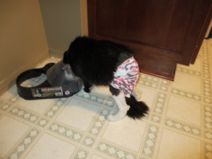 An update on Bella: We took her back to the vet on Monday because she had once again ripped out her stitches. We picked her up Tuesday night and the new approach is to keep the wound open, but covered, hence the cute little pink camo pants she’s rockin’ in that picture! We have to visit the vet DAILY to have them change the dressing, and I don’t even want to mention the pricetag that all of this care has racked up. Worth every penny though – Bella is like our child!