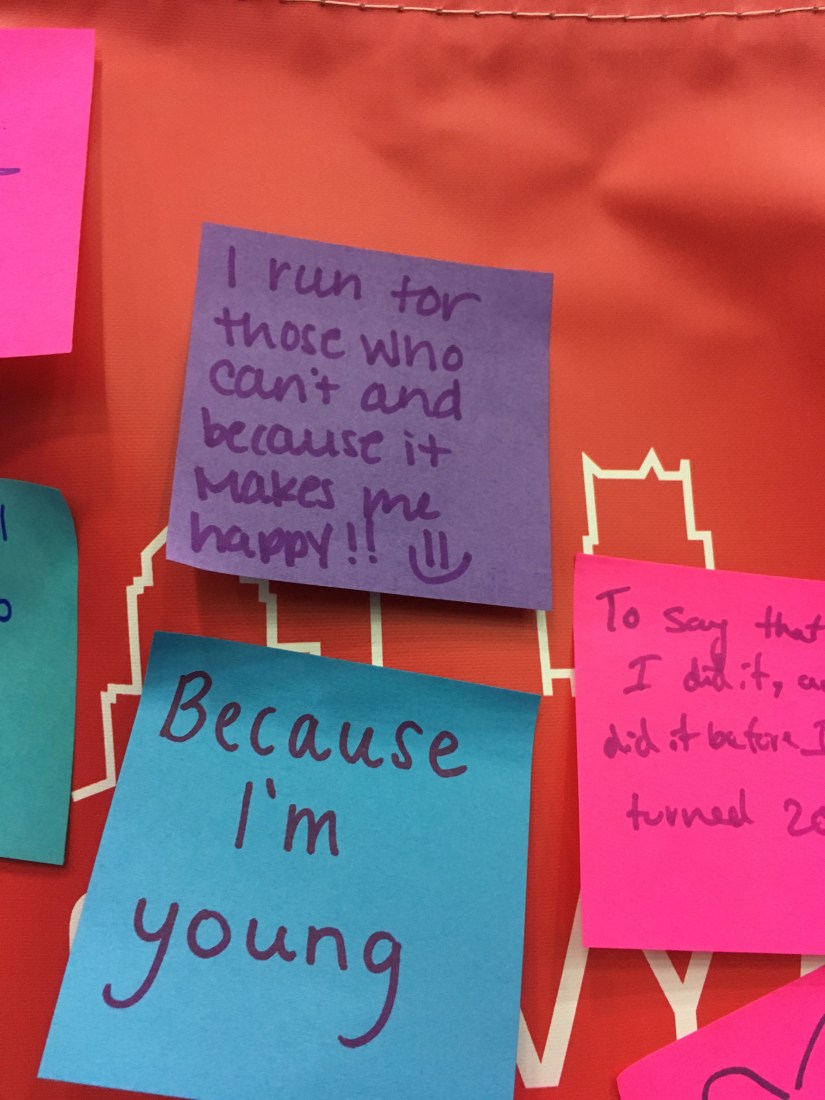 We headed back to the expo to pick up Paula’s bib and swag after we finished lunch. Although Christine and I had perused the expo a little bit before leaving earlier, we saved the fun stuff for when Paula was there. We stopped at a few different booths – I got 5 more Hippie Runner headbands, even though I have a shelf full of them already at home, I found a 2016 marathon shirt in a smaller size that fits me so much better, and I got a New Balance long sleeve running shirt for 70% off! Paula had some taping done and picked up some tips about choosing shoes. We stopped at all of the photo ops and got some adorable pictures.