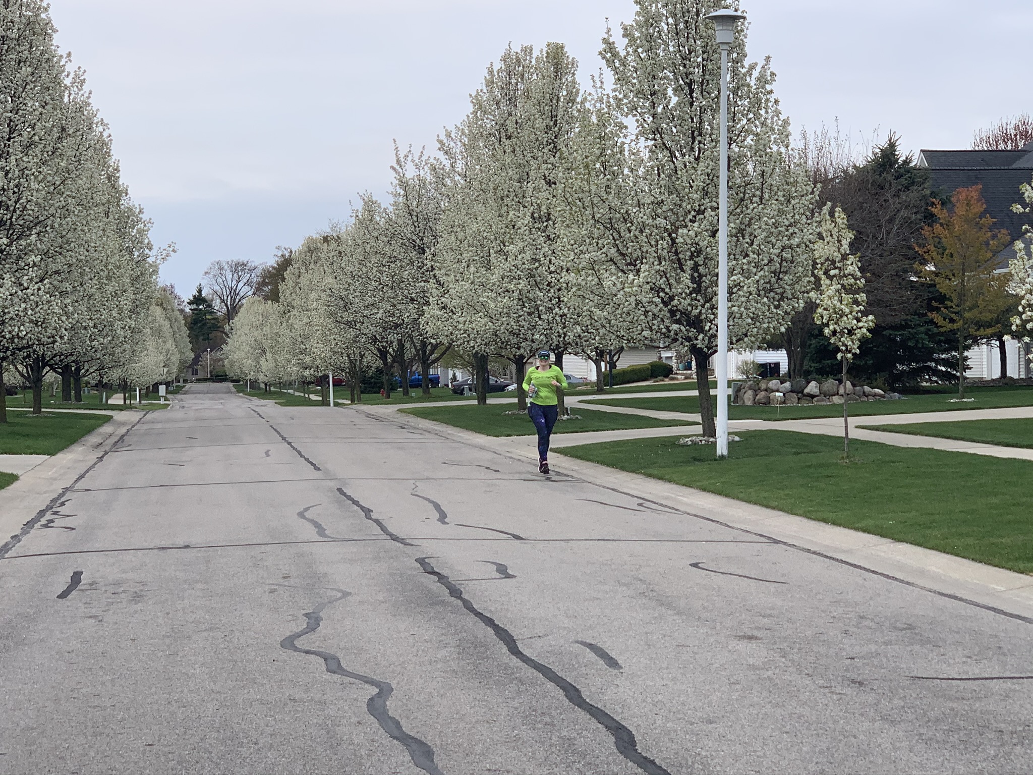 Although it was not the same as running the actual race through the streets of Grand Rapids, my at home version presented its own challenges. I have been in my feelings this past week – the canceled events and not getting to do the things I planned to do have really bummed me out. I miss my family and friends so much! Honestly, the last thing I wanted to do this weekend was run a “race” without people. I chatted with my friends about it from Thursday to Saturday… everything from dreading it, to thinking I couldn’t do it, to being so sad that I would be alone. One of my friends pointed out that she thought I might have the taper crazies that I had told her about. I told her she was probably right.