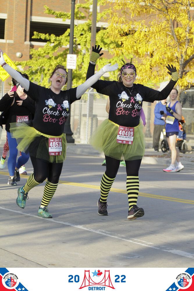 The short & sweet version of this race recap: I participated in “The Wonder” Challenge (1 mile and 5k on Saturday, international half marathon on Sunday) at the 2022 Detroit Free Press Marathon races this weekend with my friend Katelyn. My hubby came along for the journey and was an amazing race photographer and cheerleader, a bunch of our running buddies were there, we met some of our favorite Instagram influencers, we wore awesome running outfits and got lots of compliments, and we had a whole lot of fun!
