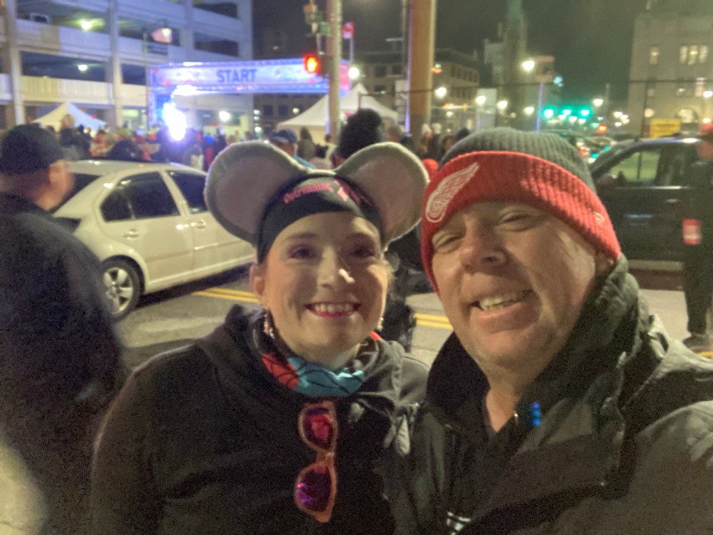 Half marathon day was a very early start for us. We got packed and ready and headed down to Detroit. The new course meant navigating all of the new road closures to find parking. We eventually got where we needed to go and walked down to the corrals for the start of the race. A couple of our friends found us once again in the sea of people in the corrals, so we got to start off our race with them. Finally it was our turn to start, and we were off to the Ambassador Bridge!